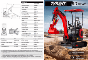 • TYPHON TERROR ONE STORM 1 Ton Mini Excavator Trench Digger with Hydraulic Oil Cooler Canopy & Wide Bucket Ideal for Garden, Farm, Park & Road Work Digging, Drilling, Bull-Dozing